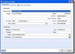 On entend par paramètres les diverses informations dont votre logiciel a besoin pour fonctionner. Il s’agit de vos coordonnées, vos paramètres de TVA, vos dates d’exercices.