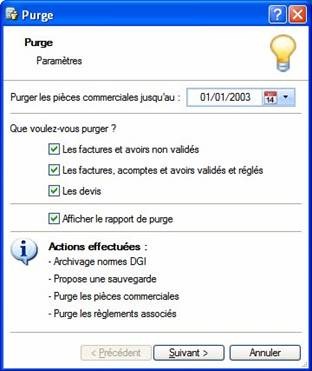 Ce traitement consiste à supprimer les pièces commerciales qui ne vous sont plus utiles (devis, factures, avoirs et règlements).