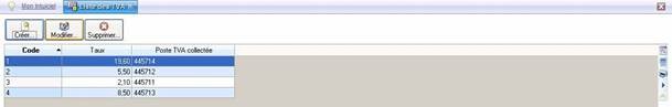 Cette liste regroupe les taux de TVA prédéfinis par le logiciel et les plus couramment utilisés.