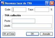 * Le bouton [OK et créer] vous permet de valider la création d’un taux de TVA et d’en recréer un autre immédiatement. En effet la fenêtre Nouveau taux de TVA reste active.